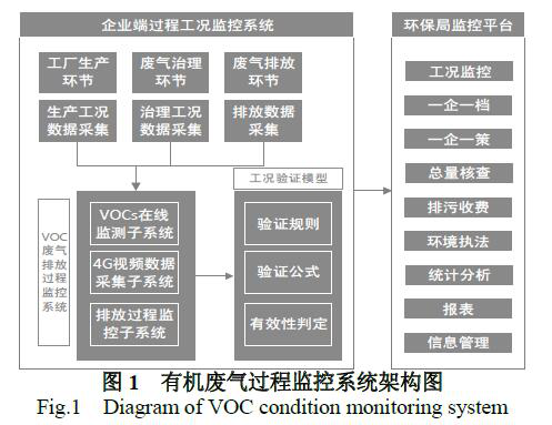 有机废气 VOC 排放过程(工况)监控系统主要由企业端VOC排放过程监控系统和环保局监控平台两部分构建,见图1。